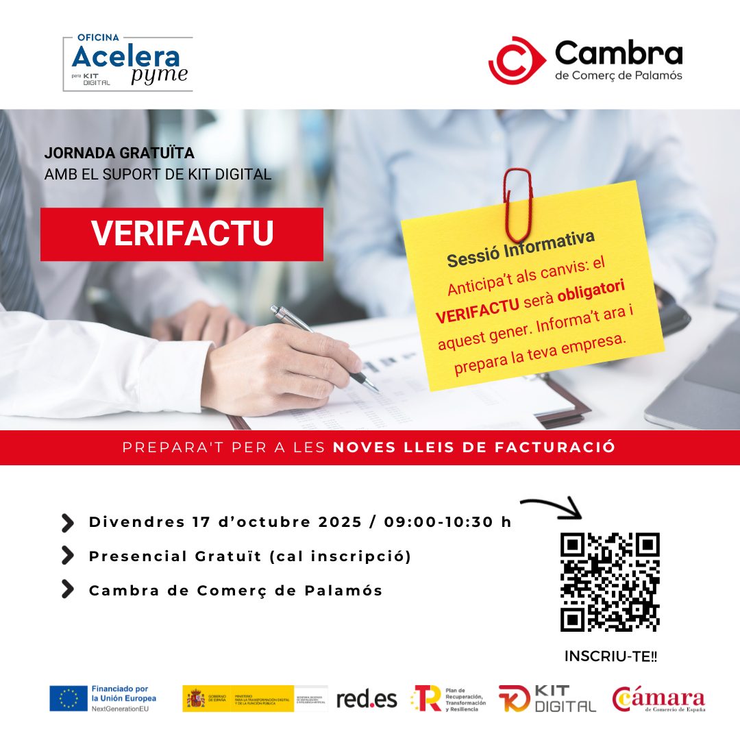 Gratuït/subvencionat. Totes les activitats de l’Oficina Acelera Pyme estan finançades pel Plan de Recuperación, Transformación y Resiliencia a partir dels fons NextGenerationEU, en el marc de l’agenda España Digital 2026 i el Plan de Digitalización de Pymes 2021-2025.